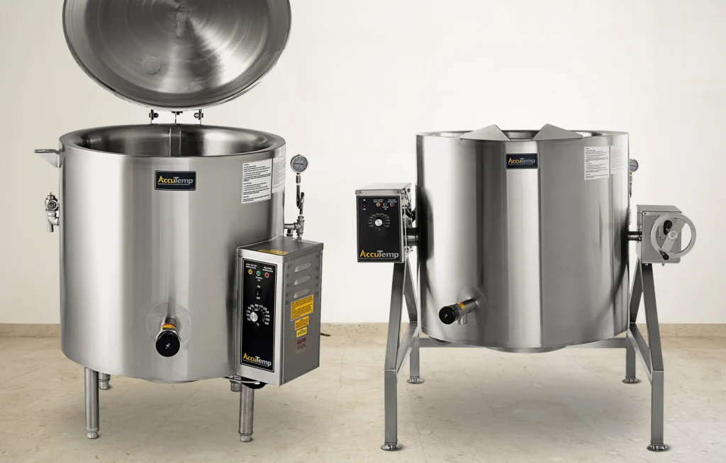 AccuTemp steam kettles allow you to prepare large quantities of liquid-based food at once, such as gravy or soup.