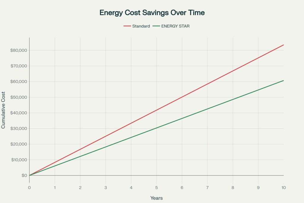 The ENERGY STAR model might cost $7,000 more upfront, but it pays for itself in year 3.1 and delivers $15,770 in net savings over its service life. This is why equipment decisions require finance stakeholder involvement—operations teams may not track kWh usage, but CFOs immediately recognize a 72% ROI on the energy efficiency premium. ES Restaurant Guide (pdf)